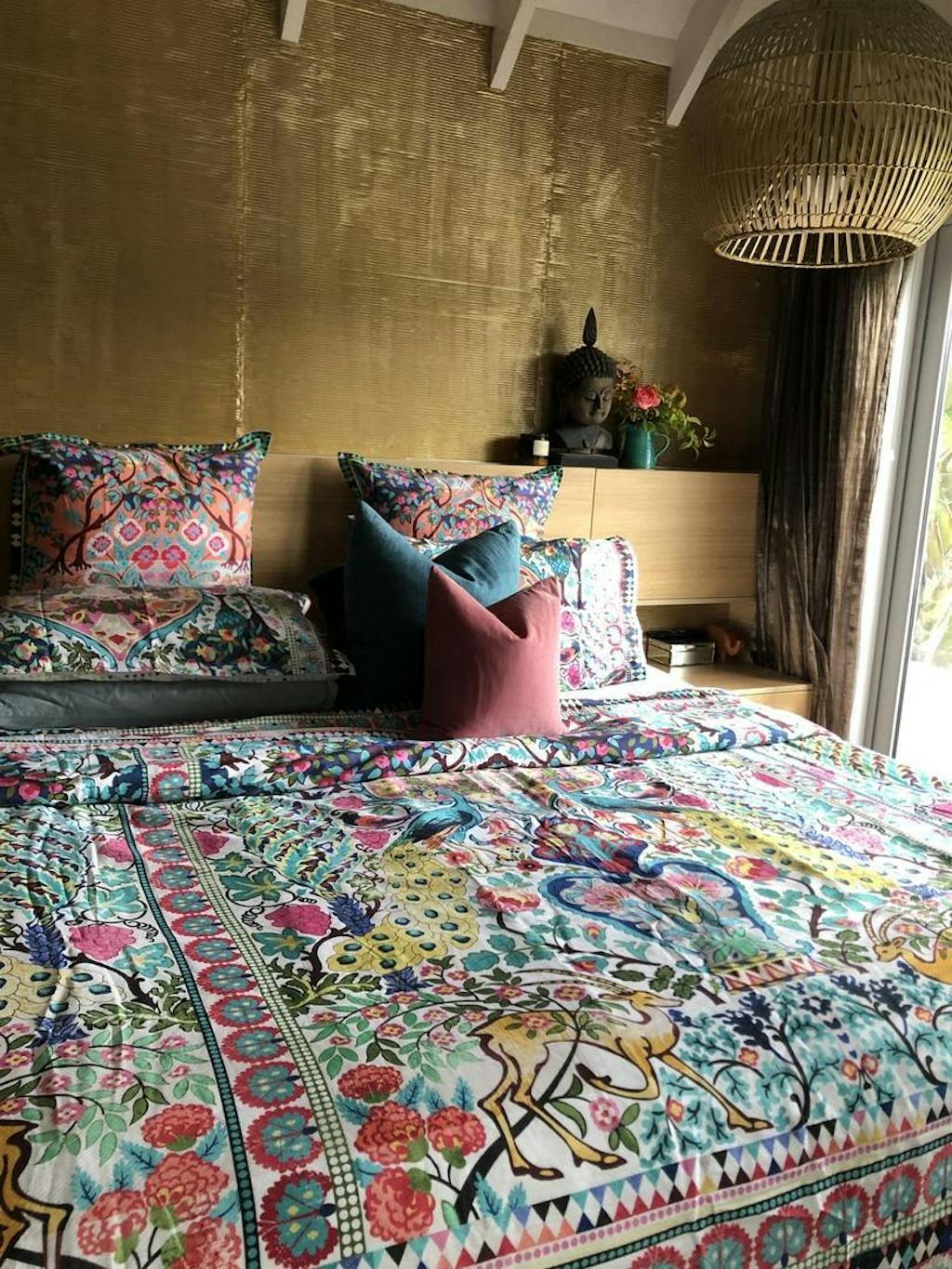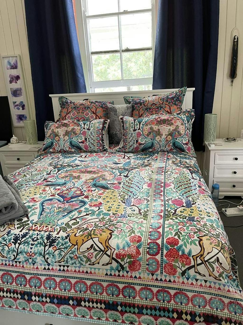 Intricate borders, playful animal elements, and vibrant florals unfold like a hand-crafted tapestry, creating a statement piece that feels collected, travelled, and timeless. Designed to be bold yet harmonious, Parisa transforms your bed into a centrepiece filled with warmth, character, and creative energy.