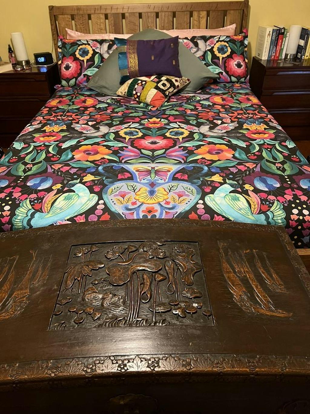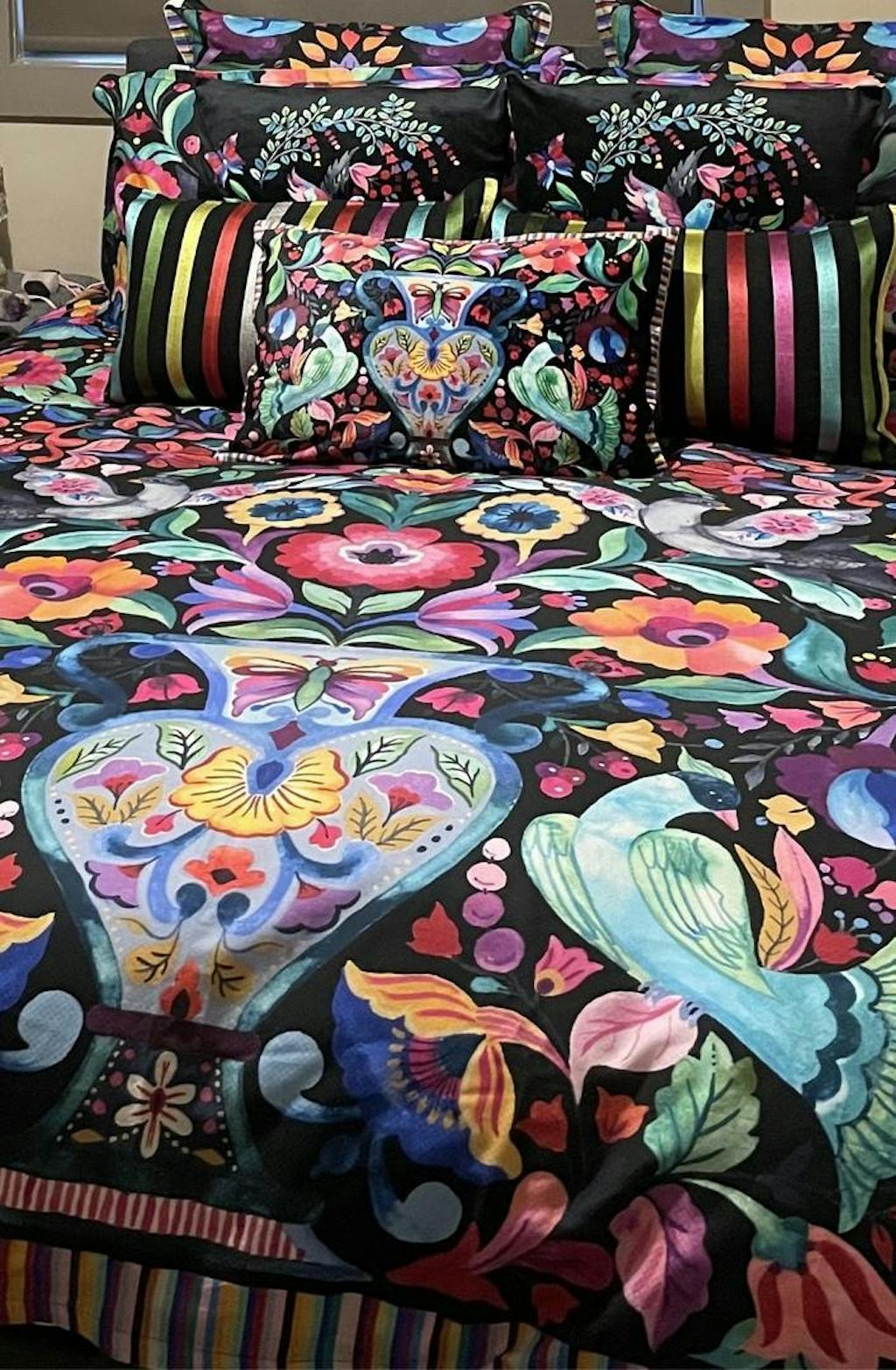 Inspired by traditional European Folk Art, the Mallorca Black Quilt Cover Set brings bold vibrancy and cultural charm to your bedroom. Featuring expressive watercolour-style artwork, this striking design transforms your space with colour, texture, and modern elegance.